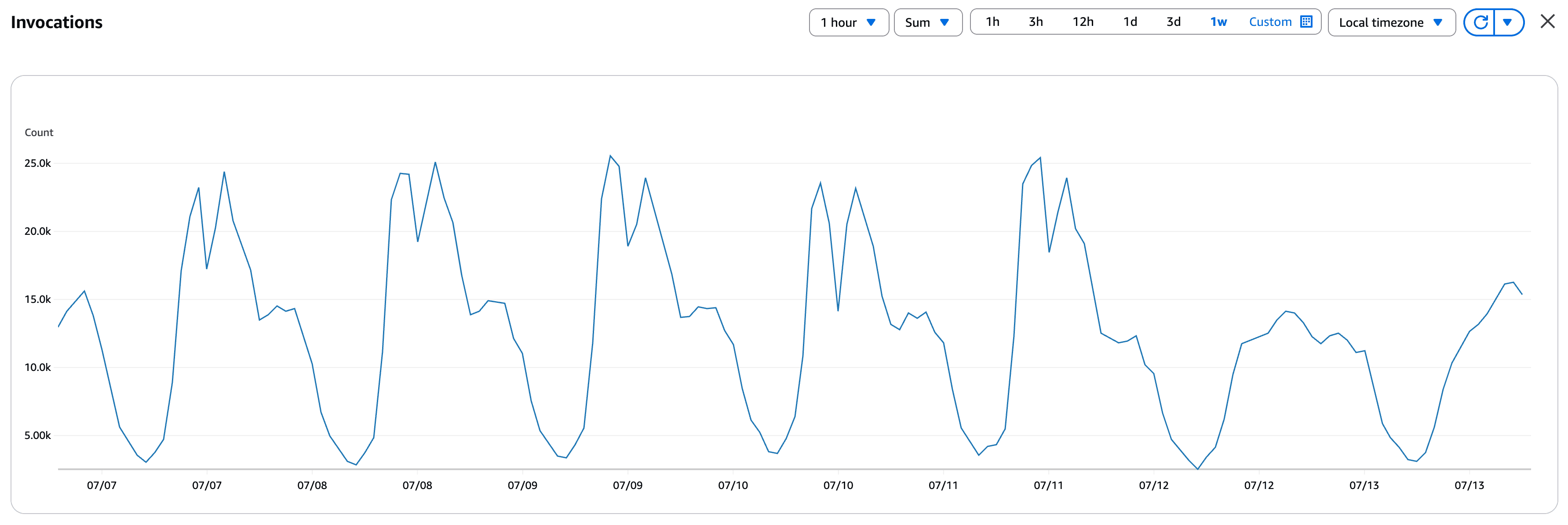 Query function invocations over a one-week period for a production service