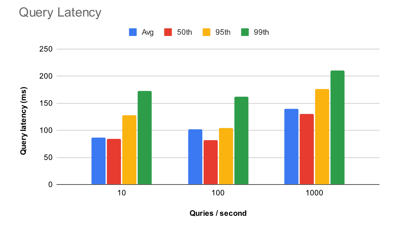 Similarly, query latency remains stable and scalable under varying loads — the 99th percentile ranges from 172 ms to 210 ms. You may occasionally experience a few seconds of latency due to function cold starts, but our production data shows this happens in less than 0.01% of invocations. We’re continuously optimizing query functions to improve both cold and warm latency, and serverless infrastructure is also improving [8, 9, 10]. For most applications, the current performance is already excellent, and the cost savings easily justify the rare latency spike.
